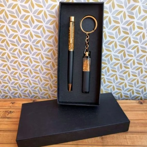 • Stylish metal pen & keychain combo with durable finish.• Ideal for personalized gifting and daily use.
